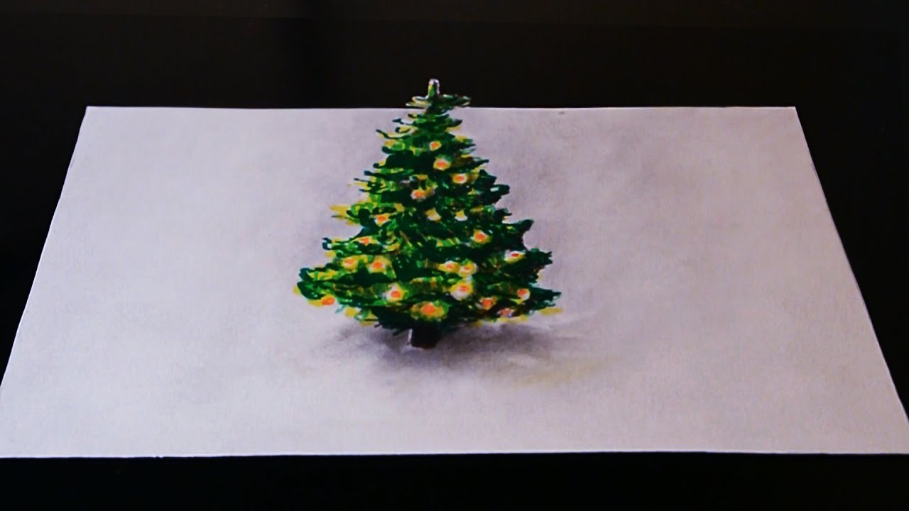 ![Объемная ёлка рисование]()