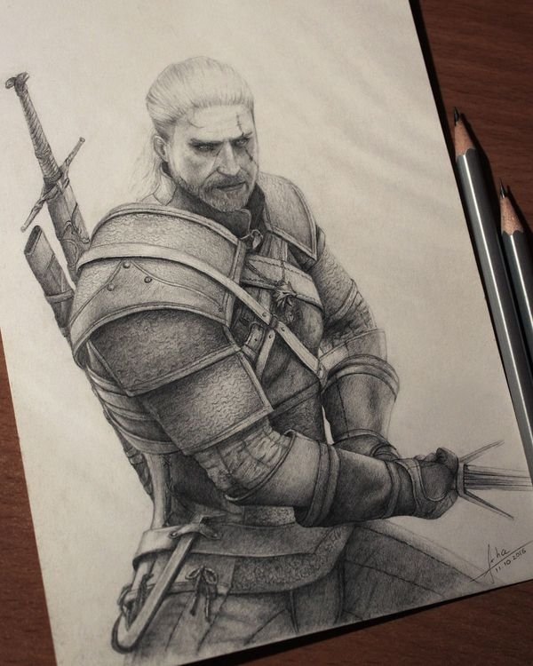 ![Ведьмак 3 Дикая охота рисунки карандашом]()
