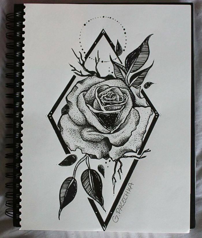 Тату роза чб
