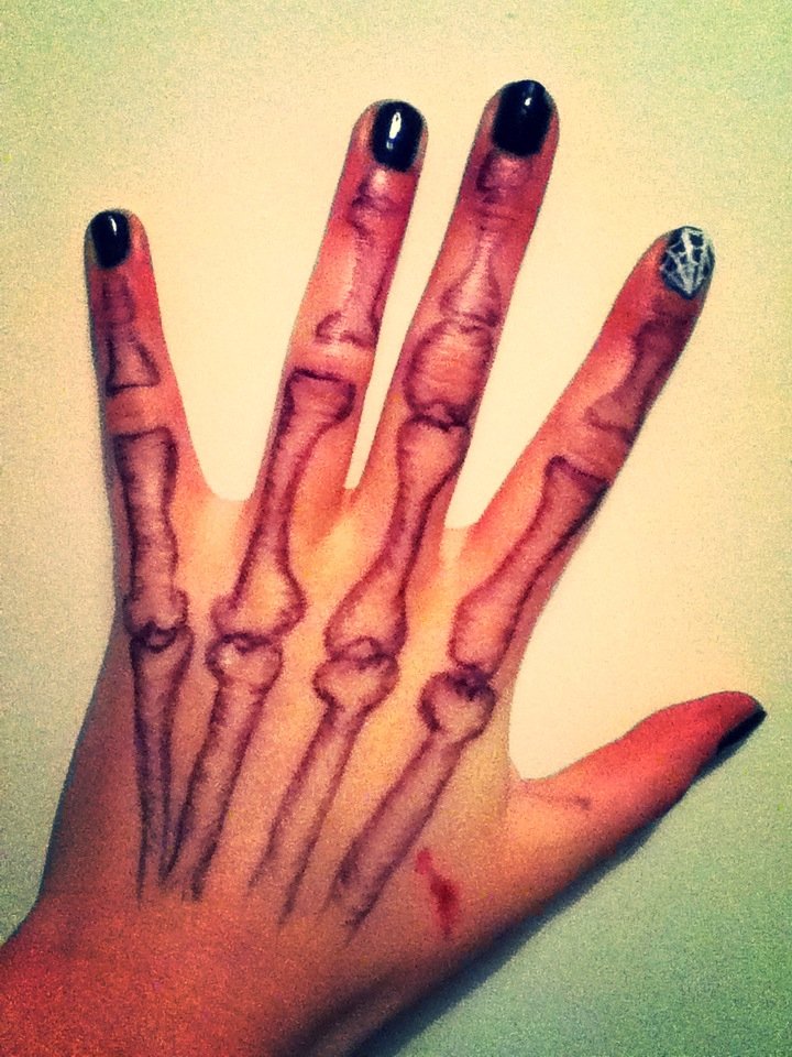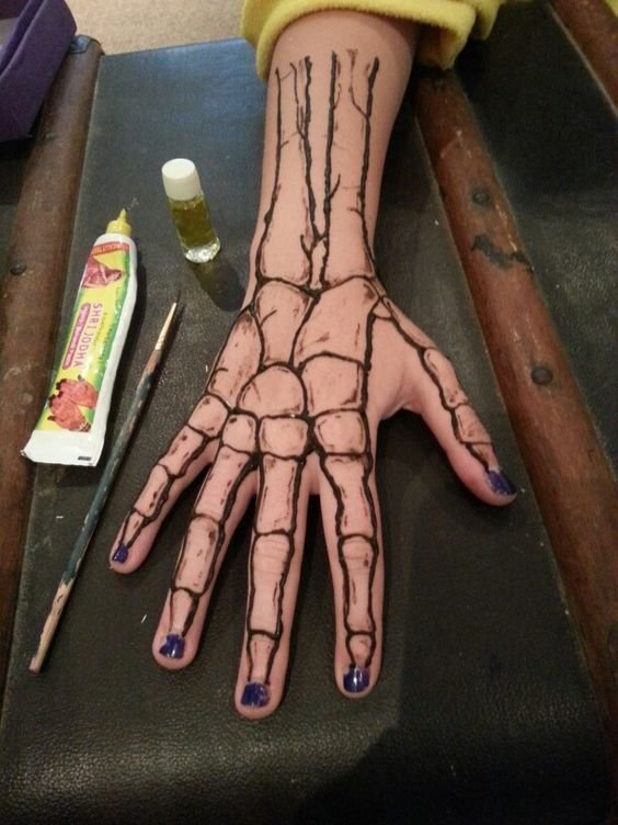 ![Хэллоуинский рисунок на руке]()