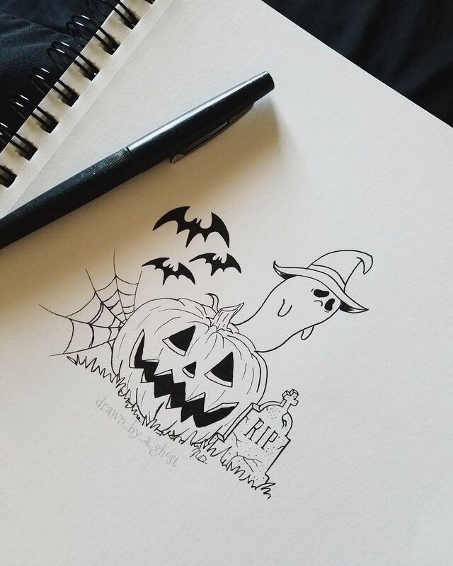 ![Хэллоуин рисунок ручкой]()