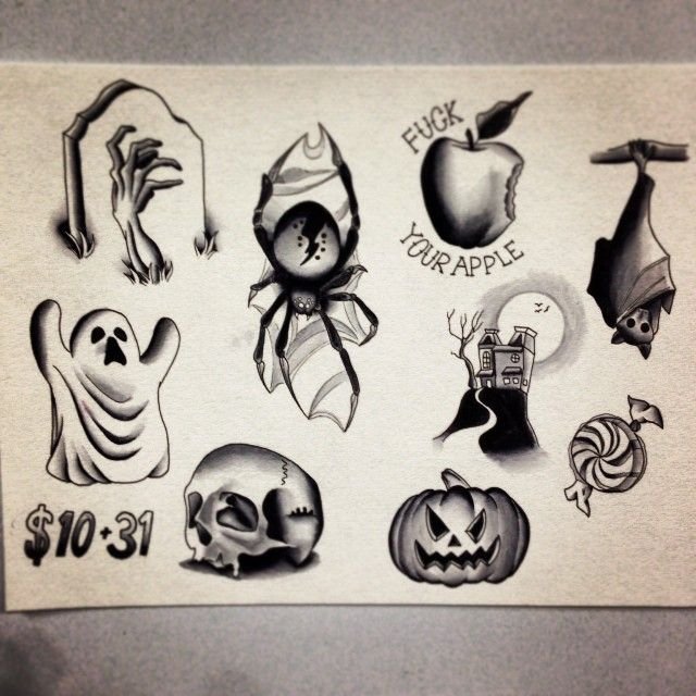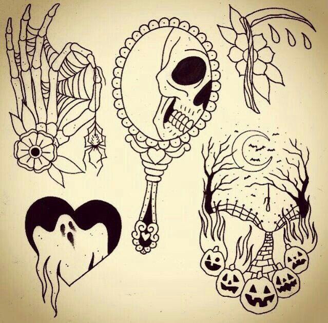 ![Хэллоуин Татуировки эскизы]()