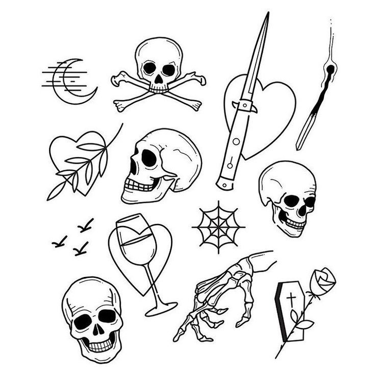 ![Тату череп маленький эскиз]()