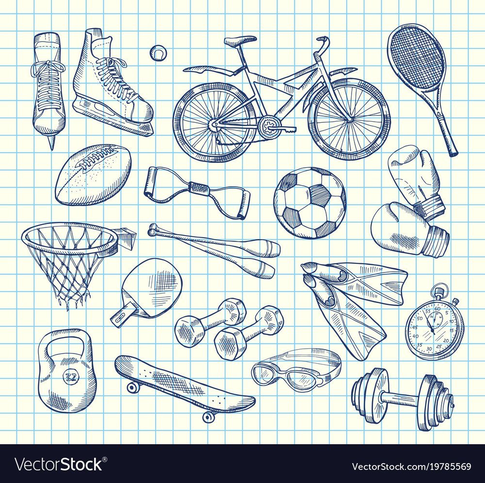 ![Зарисовки спортивного инвентаря]()