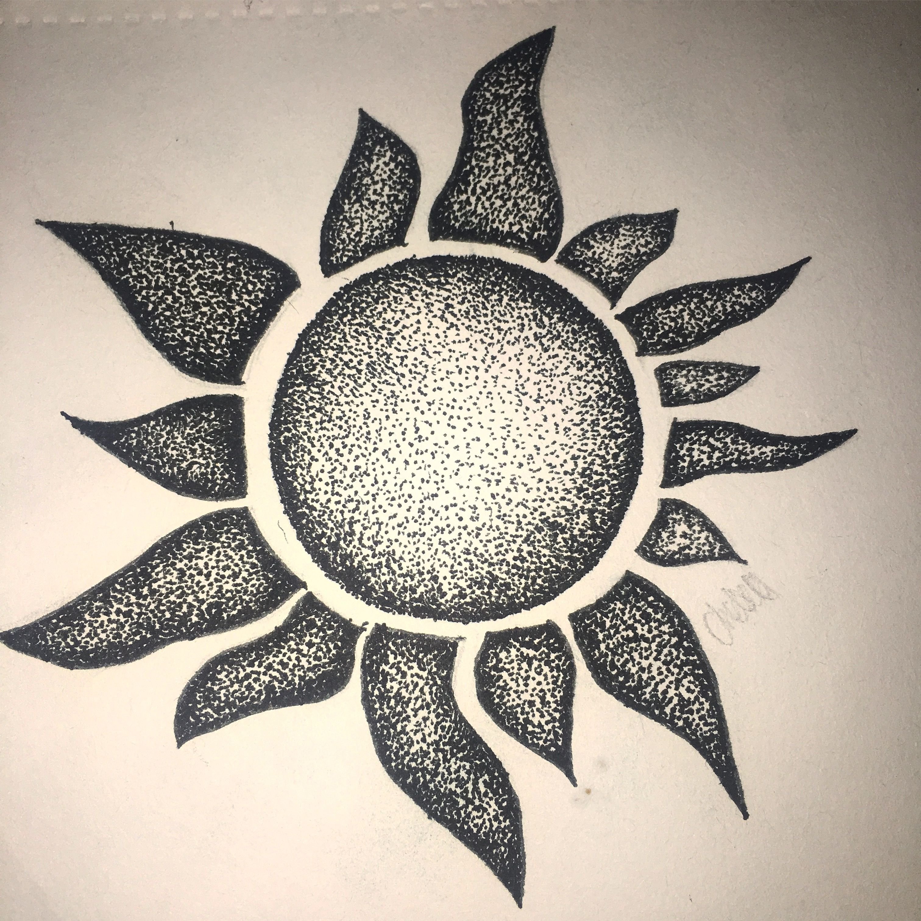 ![Солнце черной ручкой]()