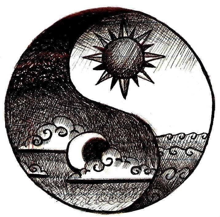 ![Инь Янь солнце и Луна тату]()