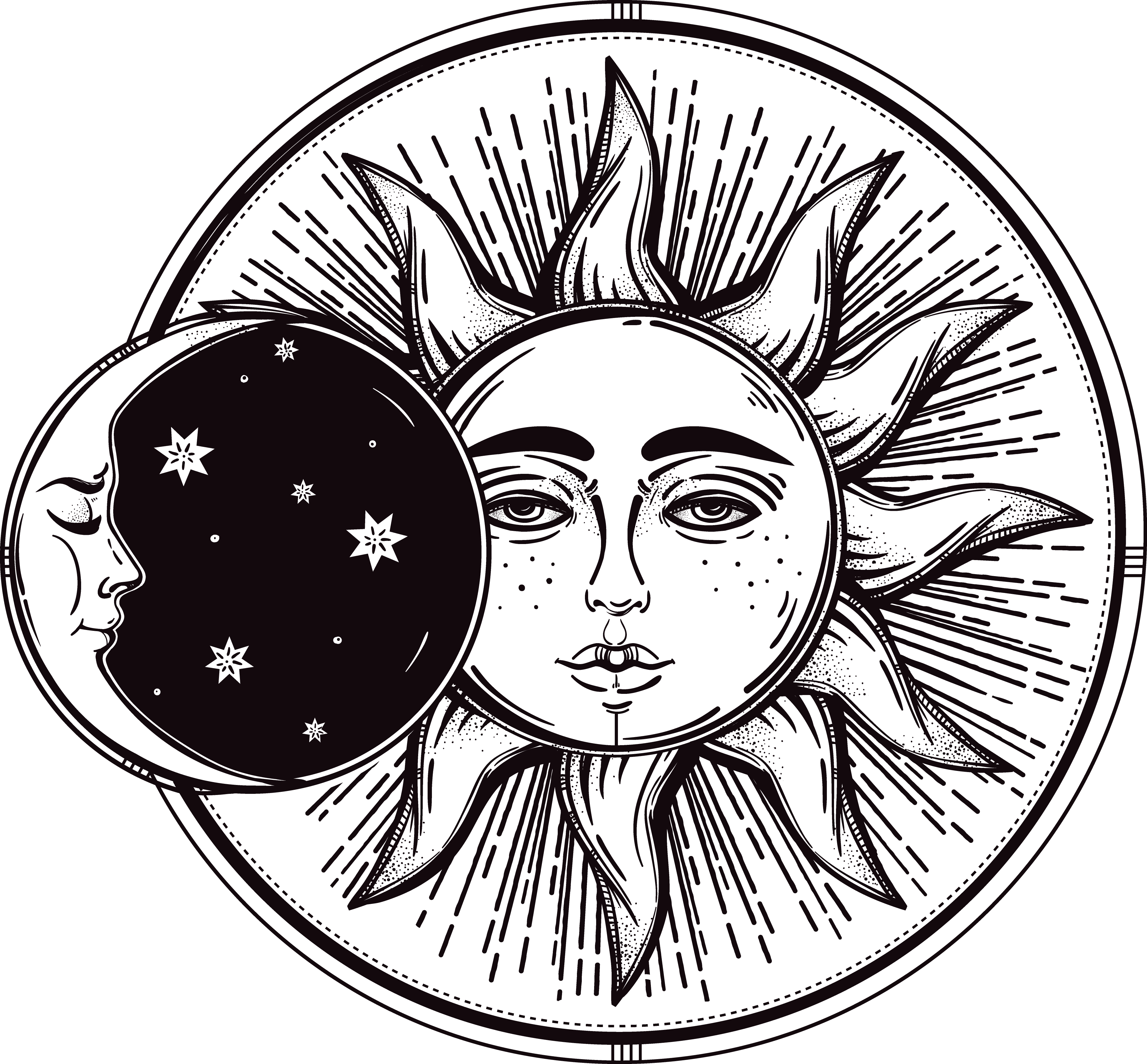 Тату солнце и Луна эскиз
