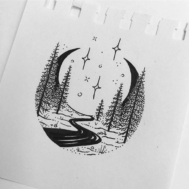 ![Река эскиз тату]()