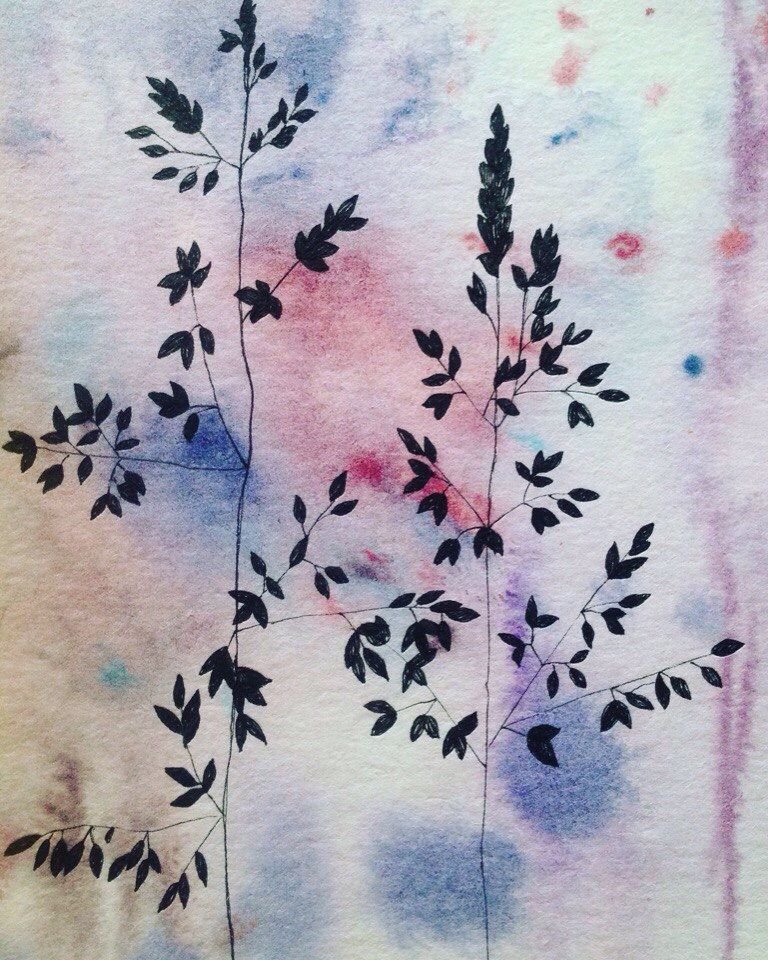 Цветы акварелью и черной ручкой