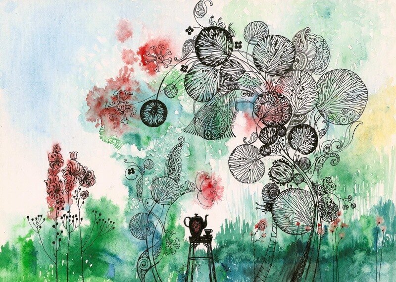 ![Рисунок акварелью и ручкой]()