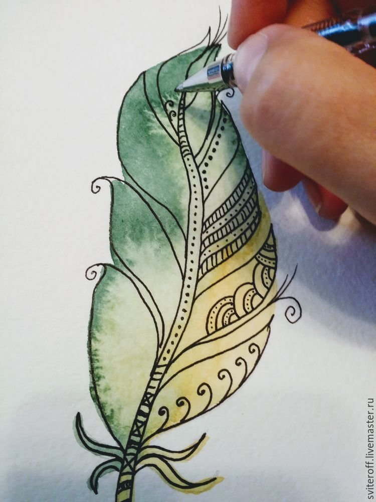 Рисование акварелью и гелевой ручкой