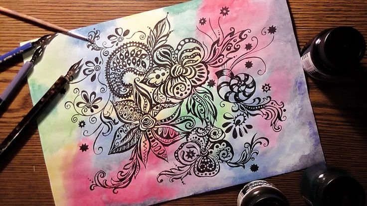 Акварель с гелевой ручкой