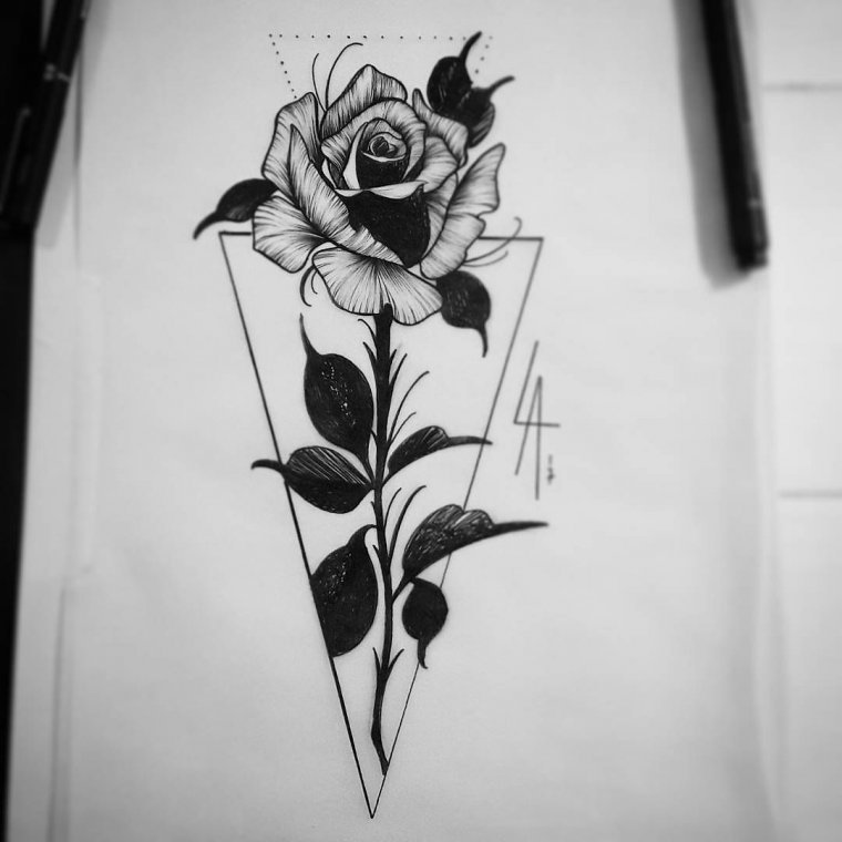 Роза тату черно белая