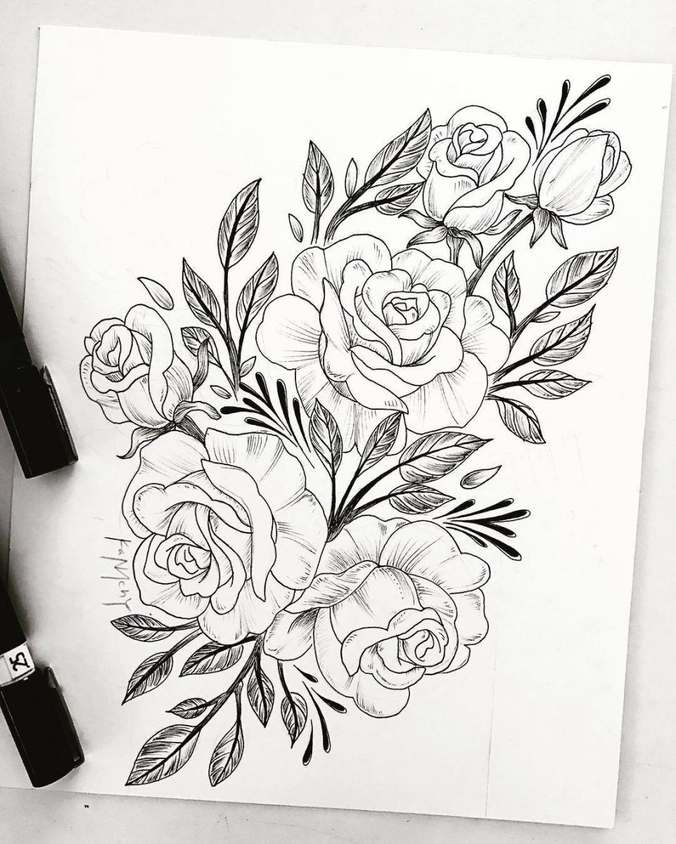 Рисунки чёрной ручкой цветы