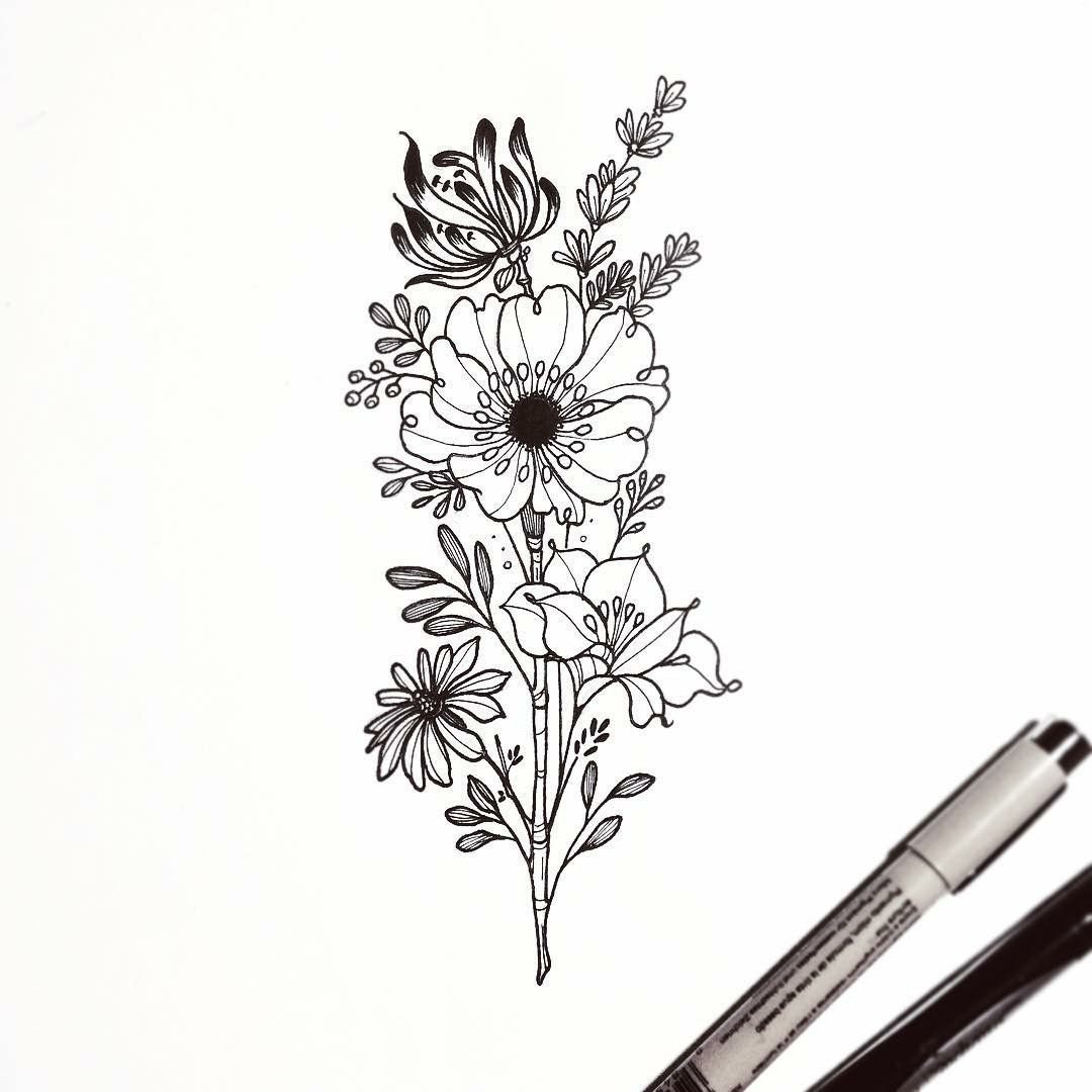 Тату полевые цветы эскизы