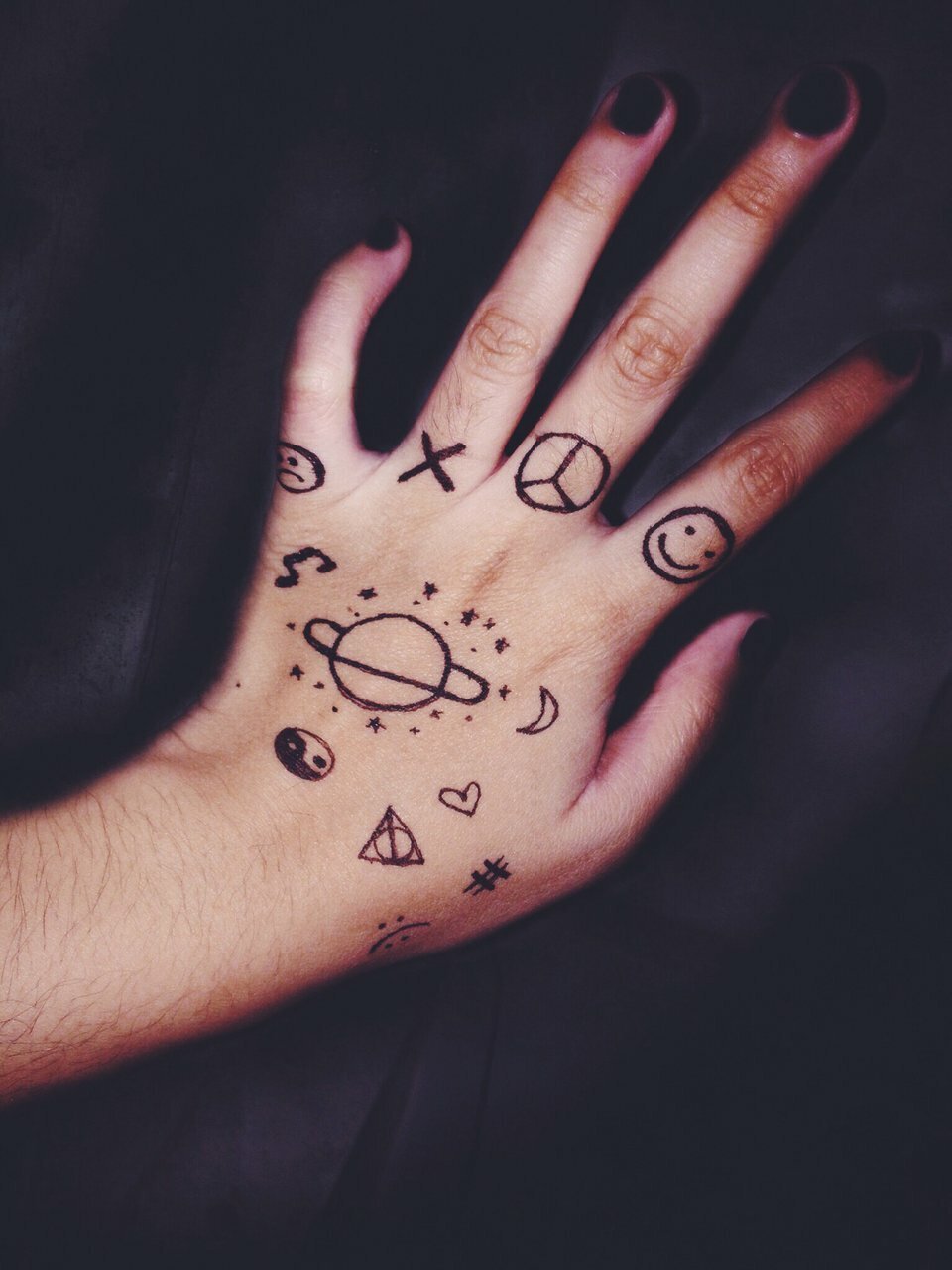Рисунки на руке черной ручкой