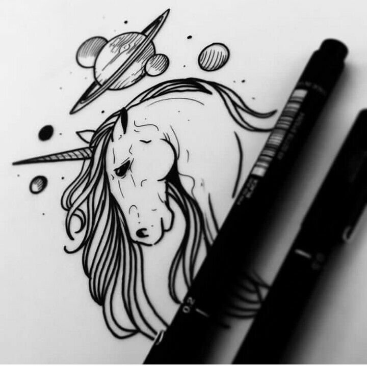 ![Тату Единорог эскизы]()