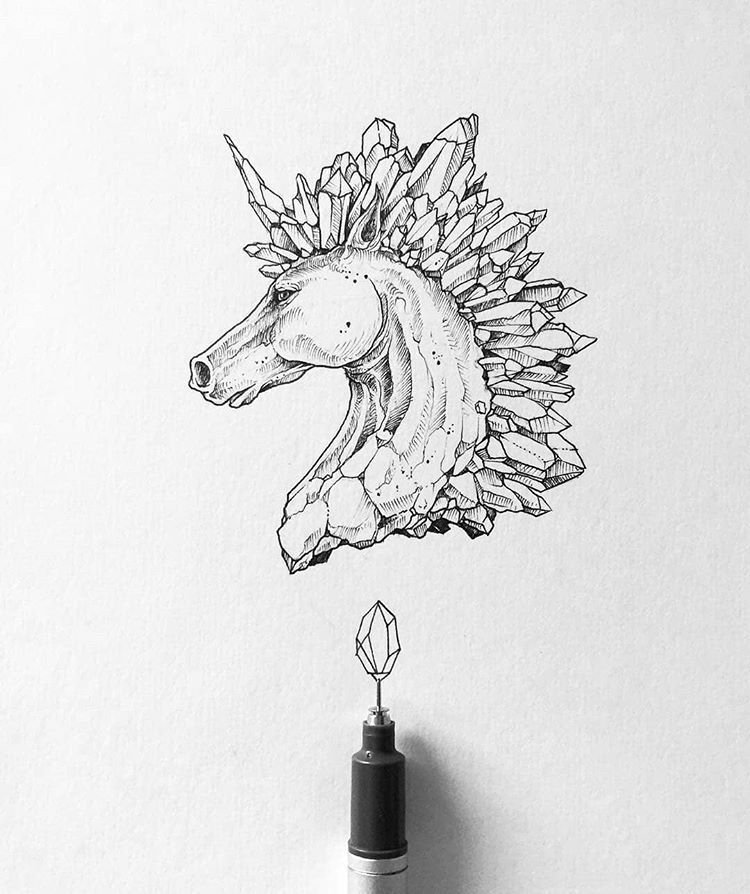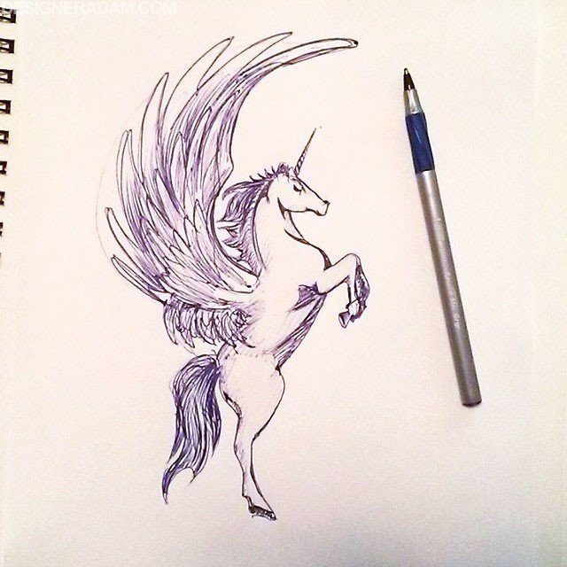 Единорог черной ручкой