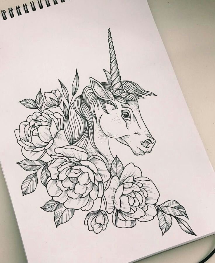 Рисунки для срисовки в скетчбук Единорог