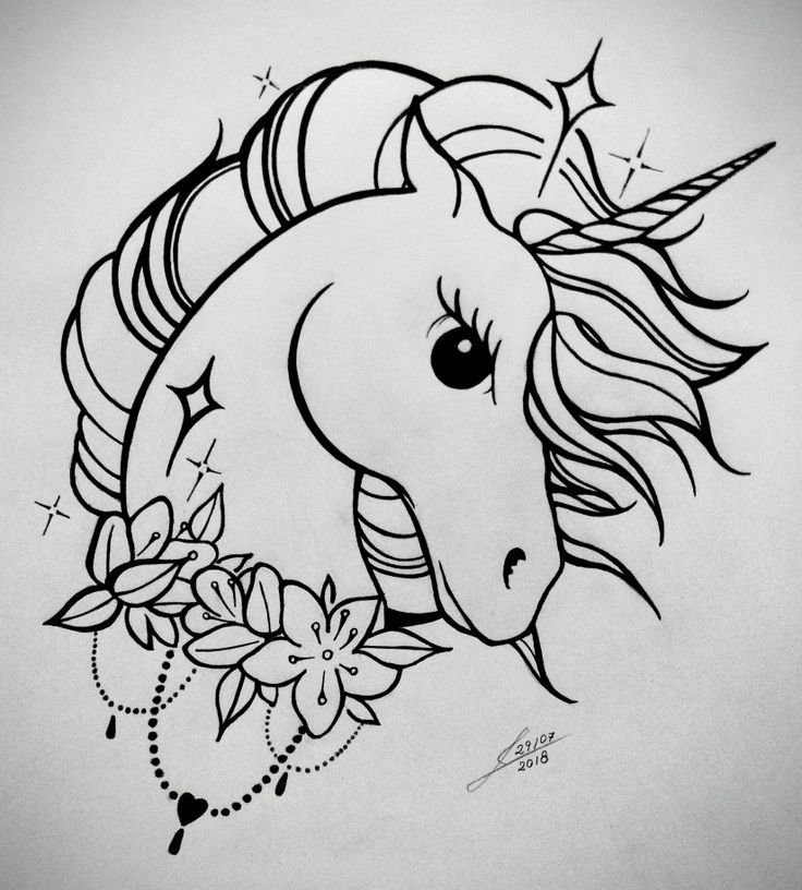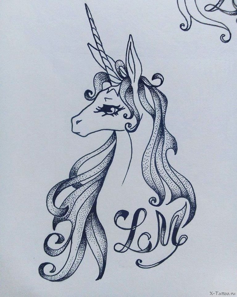 Тату эскизы Единорог милый