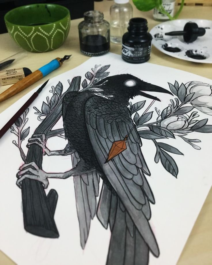 Величественный и загадочный ворон, запечатленный на бумаге с помощью черной ручки, привлекает внимание своей элегантностью и таинственностью. Каждая черта этого рисунка передает характерную мощь и грацию птицы: изогнутый клюв, стройное телосложение и перья, создающие образ темной силы. Отличительной особенностью данного изображения является детализация, которая позволяет полностью погрузиться в мир ворона, подчеркнув его индивидуальность и неповторимость. Рисунок ворона черной ручкой является уникальным произведением искусства, способным заинтересовать и вдохновить любителей живописи и птиц.