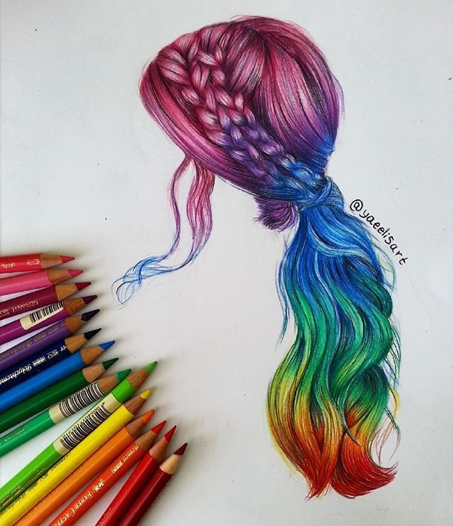 Причёски карандашом цветнве