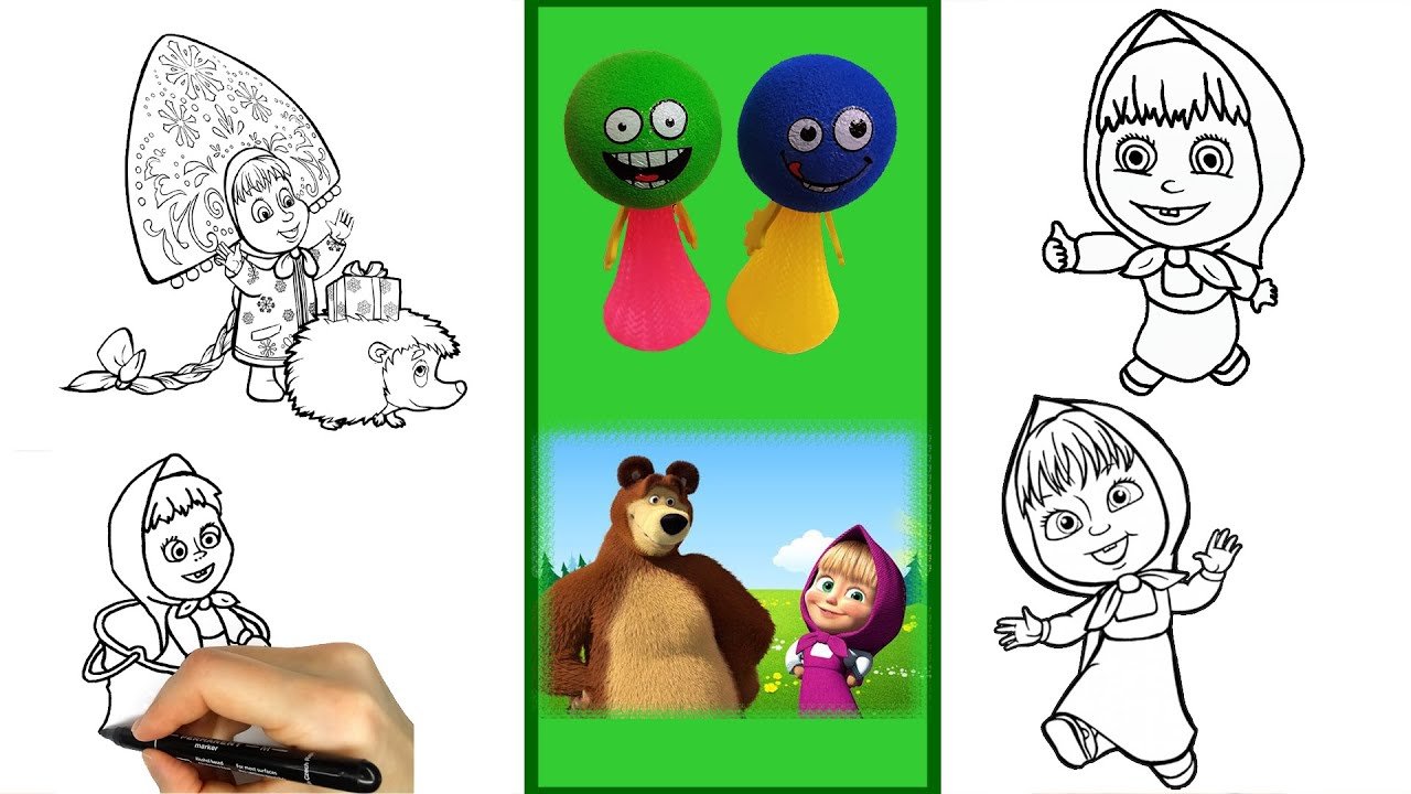 ![Маша и медведь раскраска цветная]()
