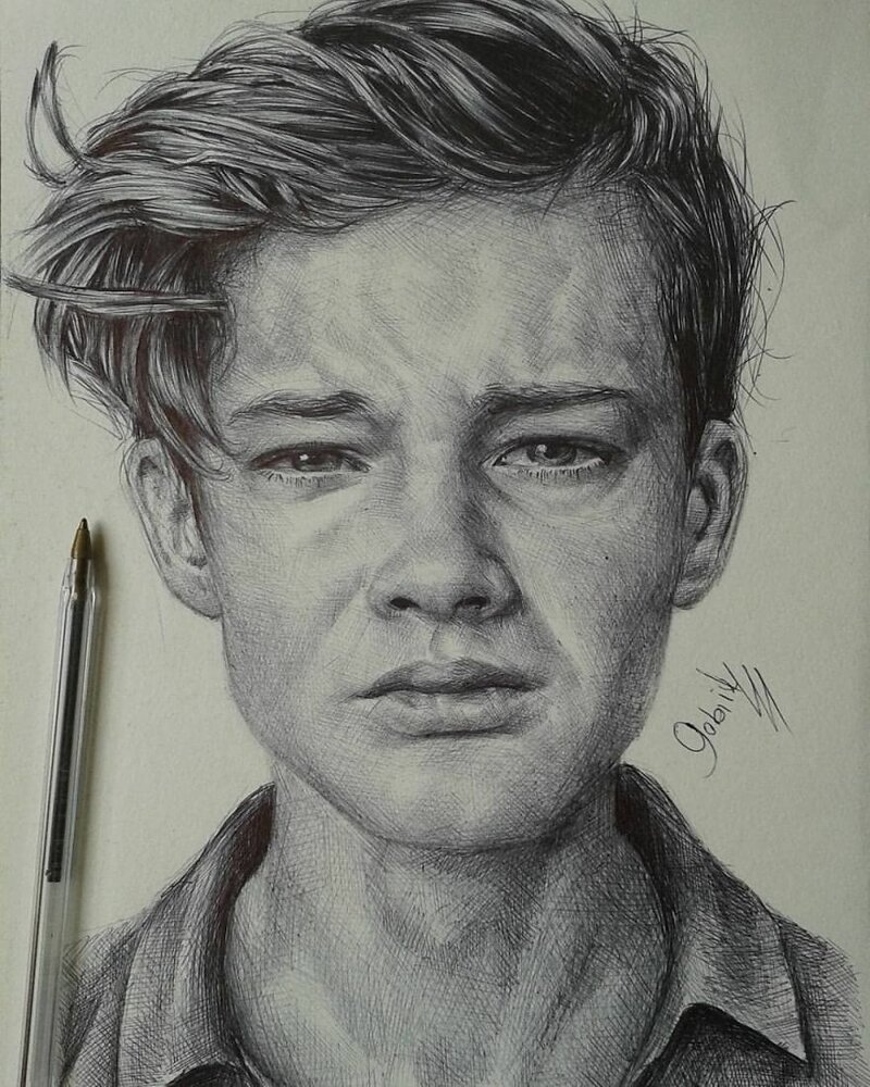 ![Портрет гелевой ручкой]()