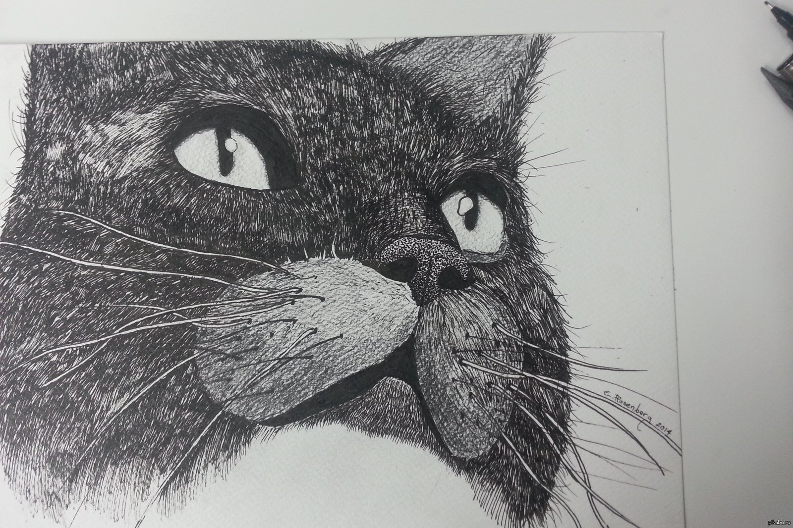 ![Кот черной гелевой ручкой]()
