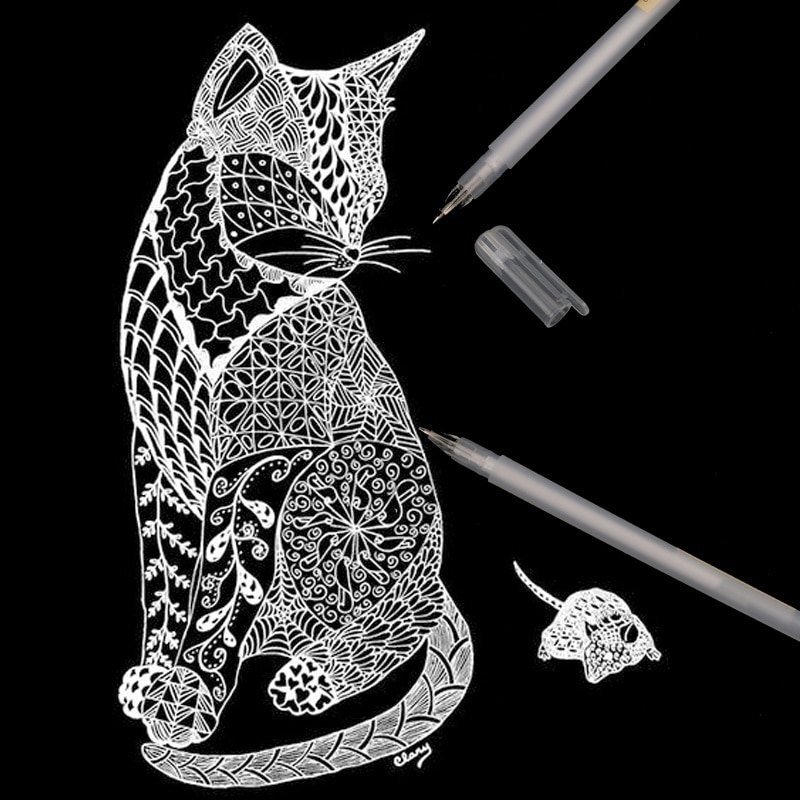 Кошка гелевой ручкой