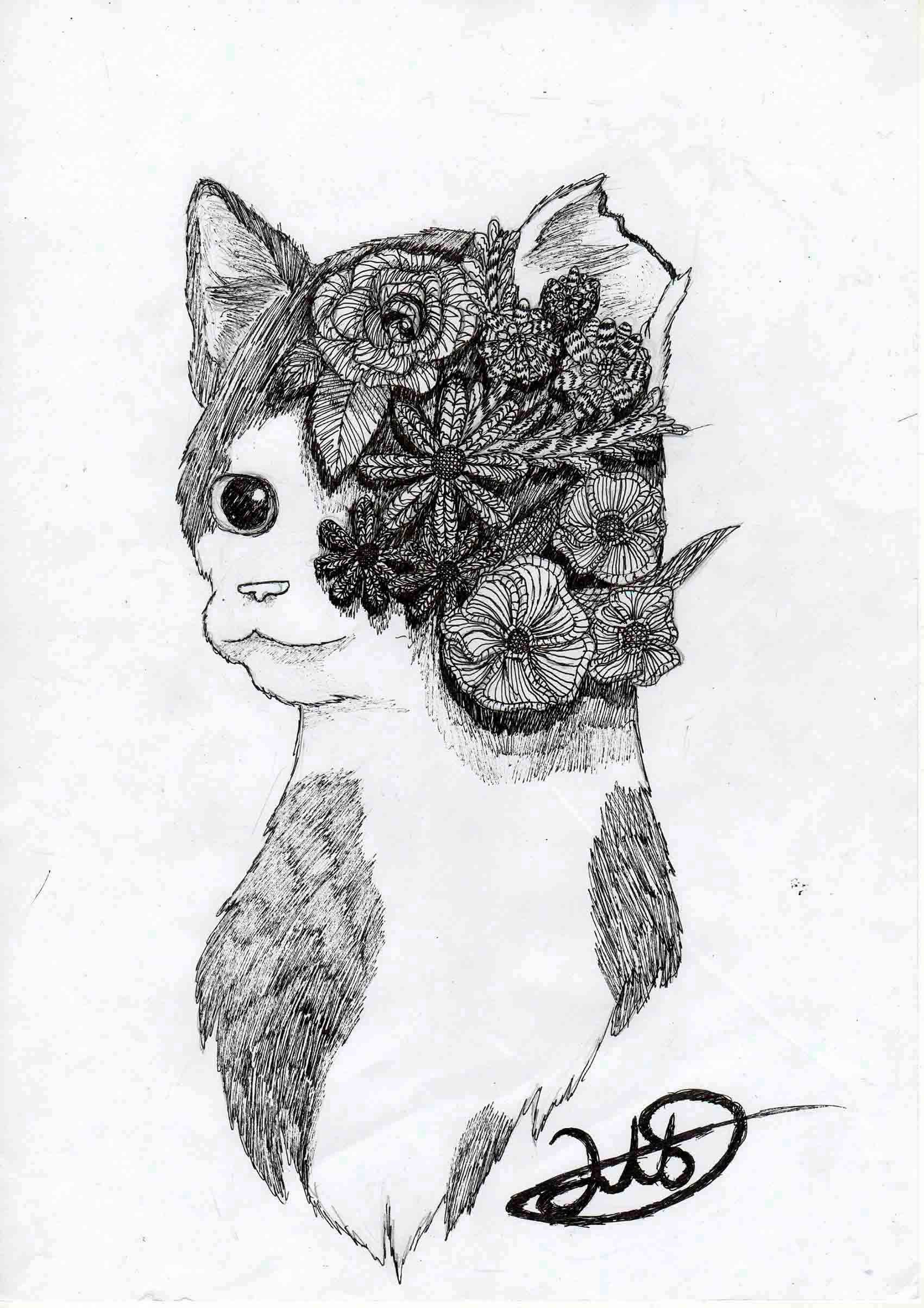 ![Кот нарисованный ручкой]()