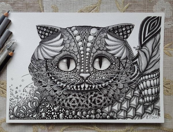 Зентангл Чеширский кот