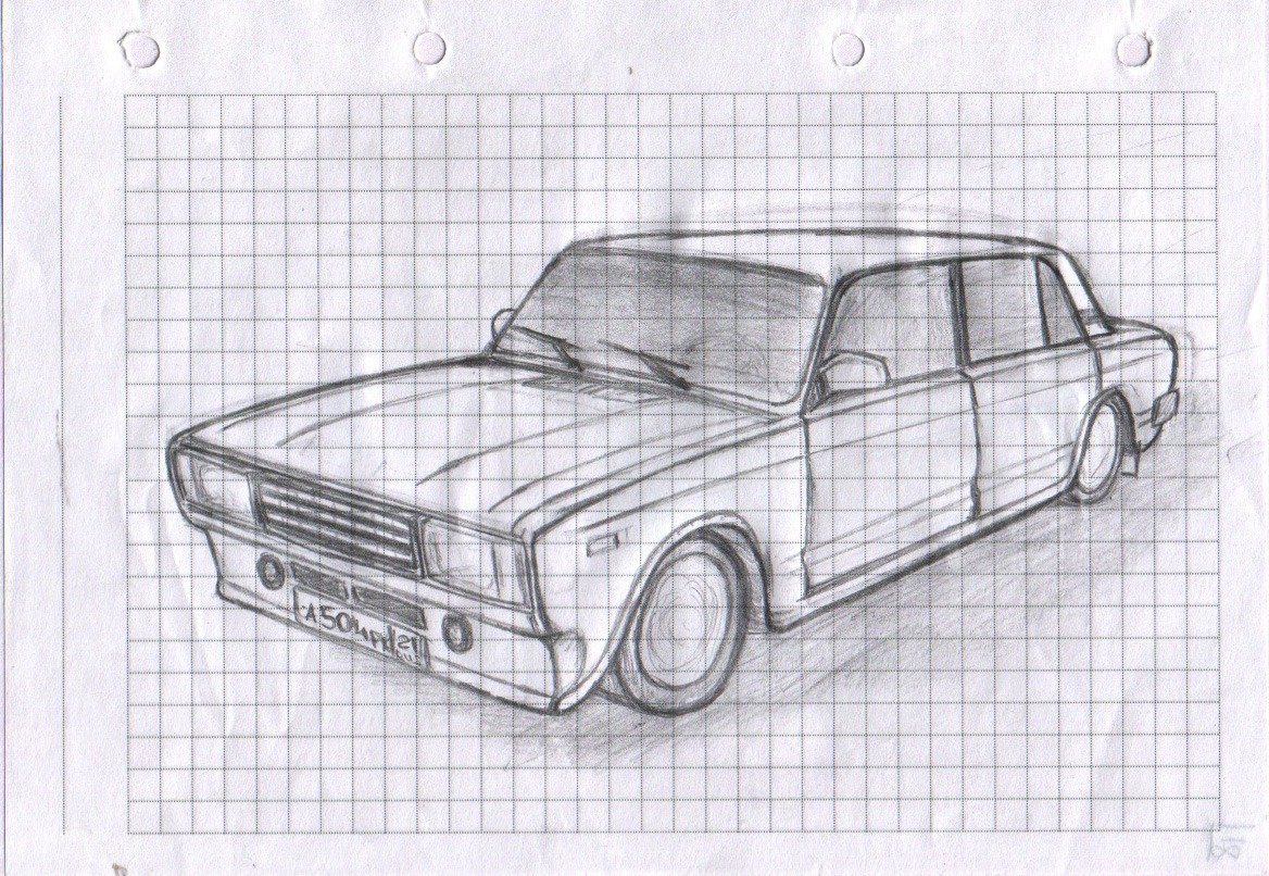 ![Машина рисунок карандашом на тетради в клетку]()