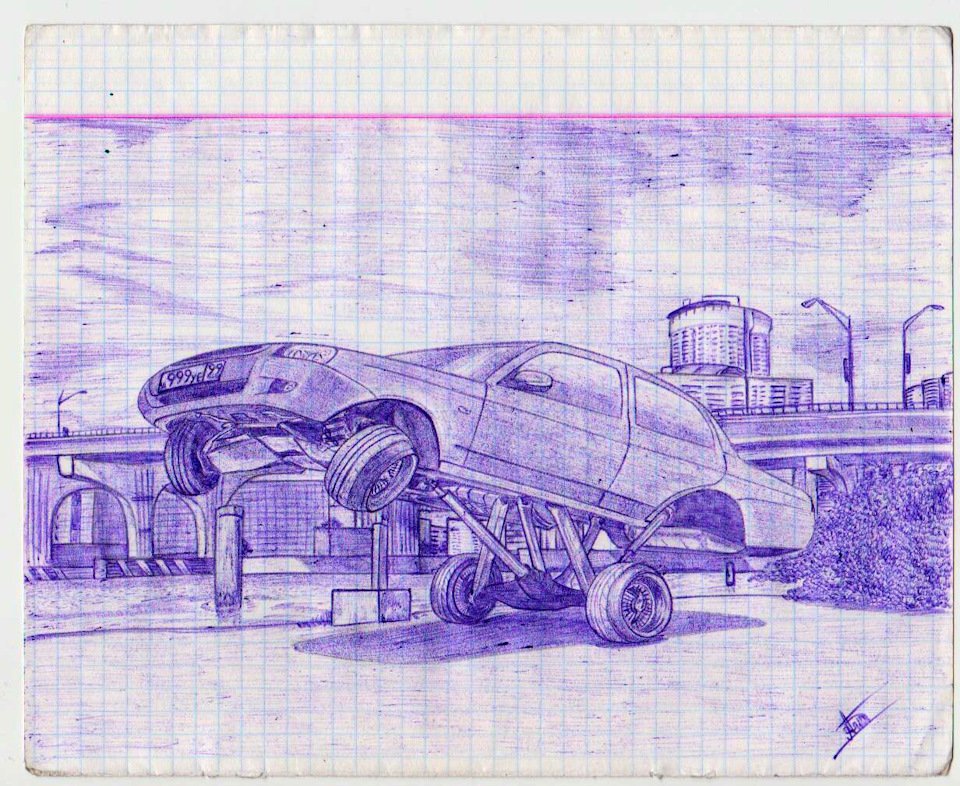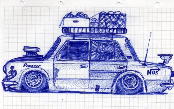 ![Автомобиль нарисованный ручкой]()