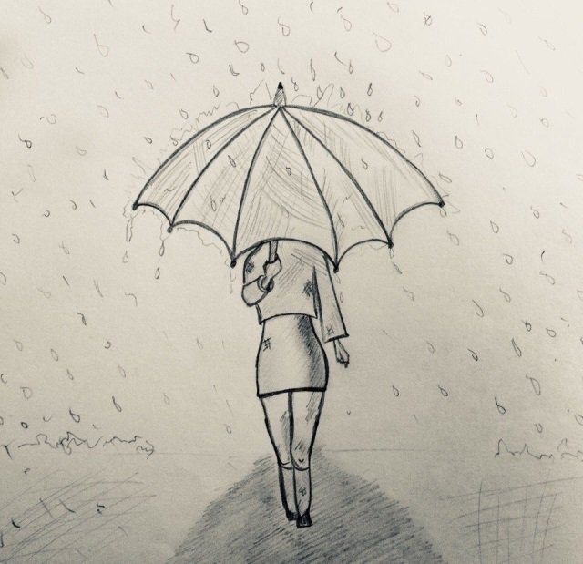 ![Зарисовка человека с зонтом]()