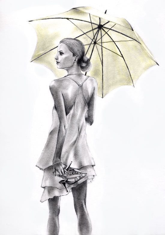 Девушка с зонтом рисунок карандашом