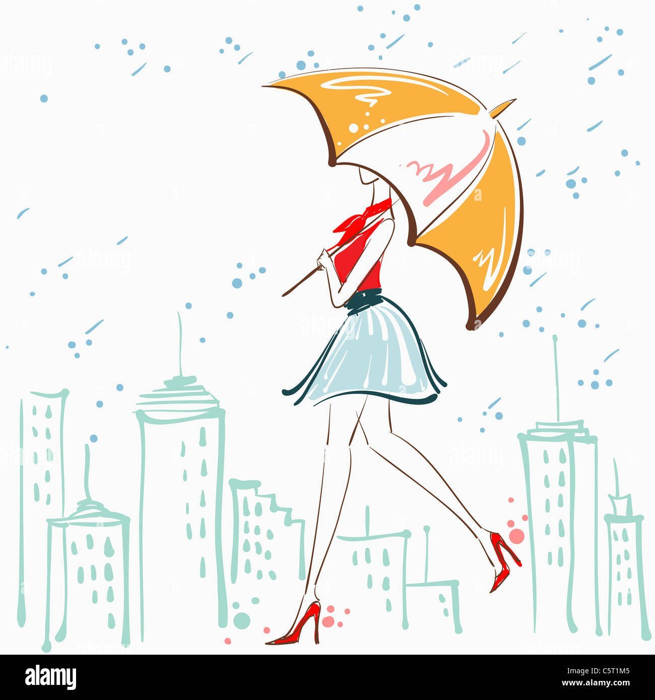 Девушка с зонтом карандашом