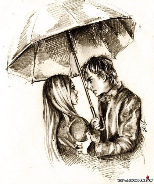 ![Девушка с зонтом рисунок карандашом]()