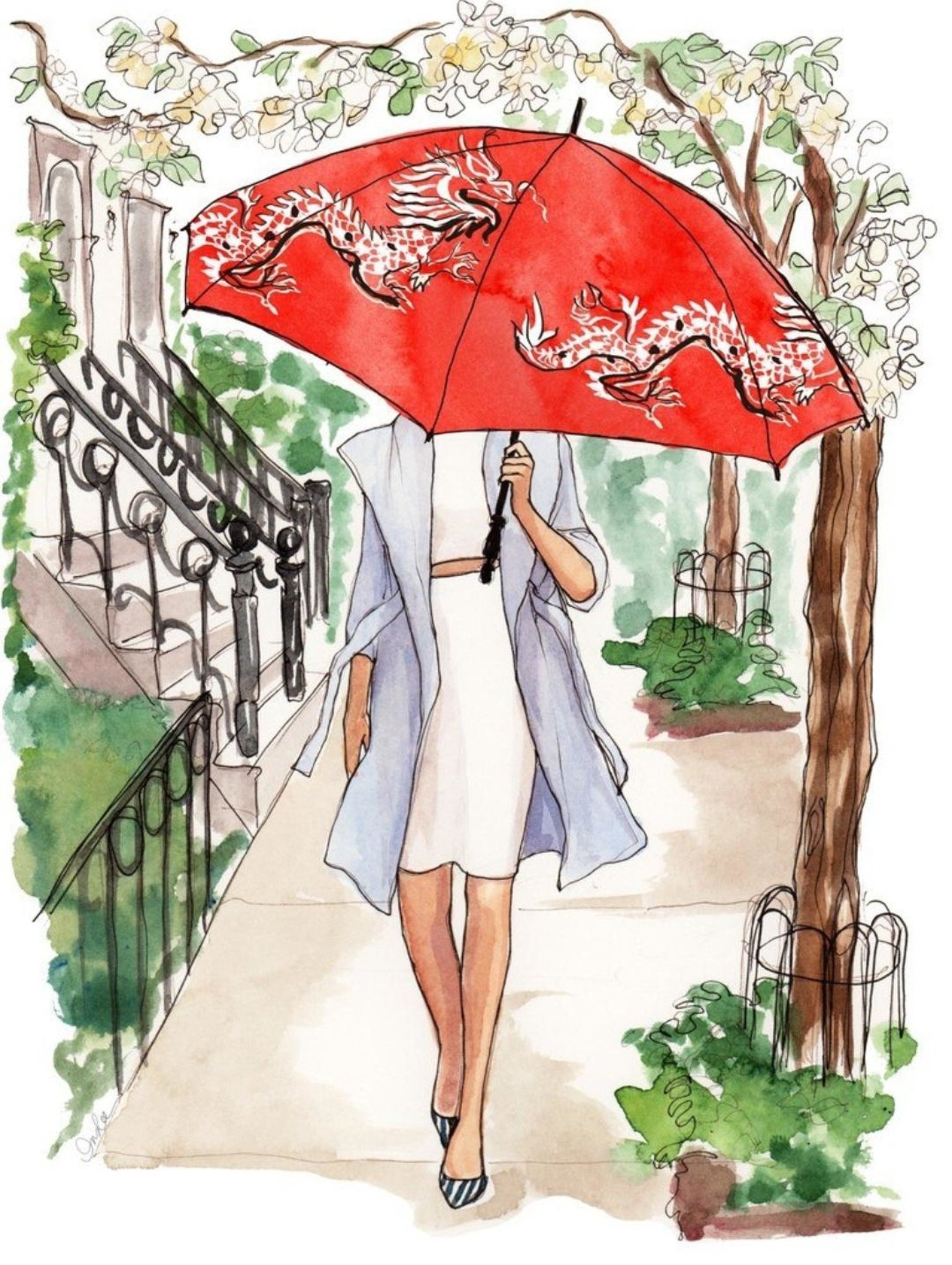 Девушка с зонтиком нарисованная