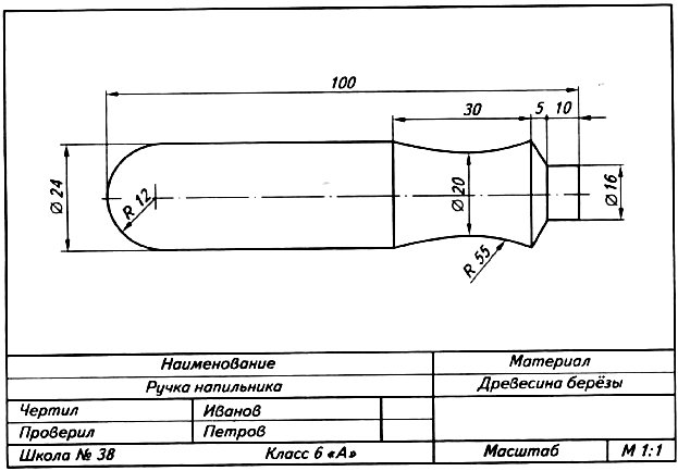 ![Чертёж детали ручка напильника]()