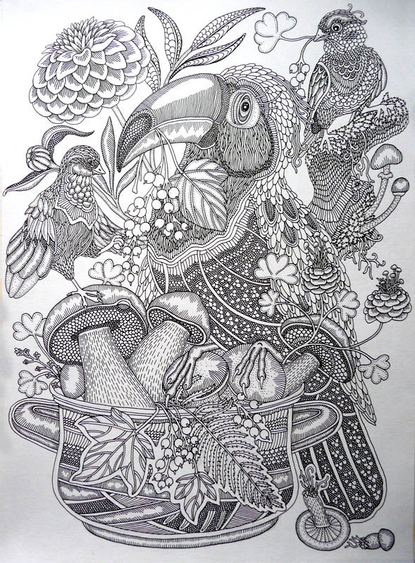 Декоративный натюрморт гелевой ручкой