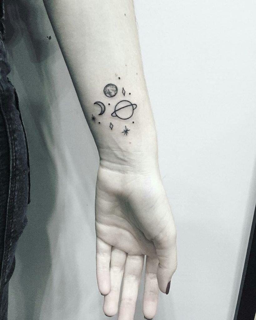 ![Маленькая тату на запястье космос]()