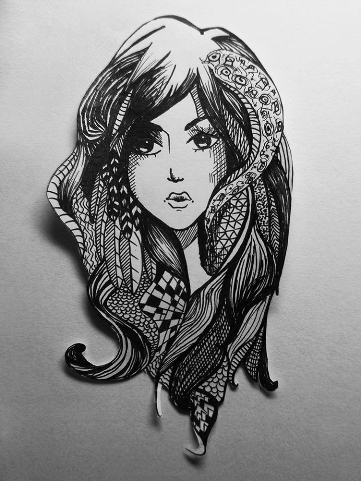 ![Красивые и милые рисунки чёрной гелевой ручкой для девочек]()