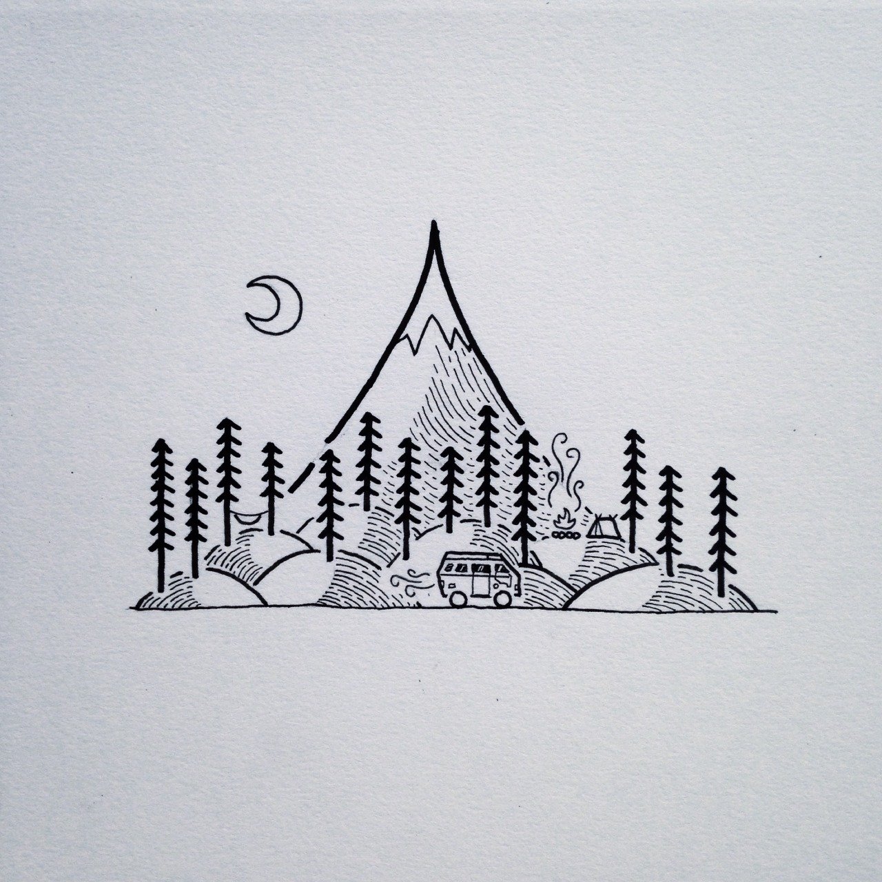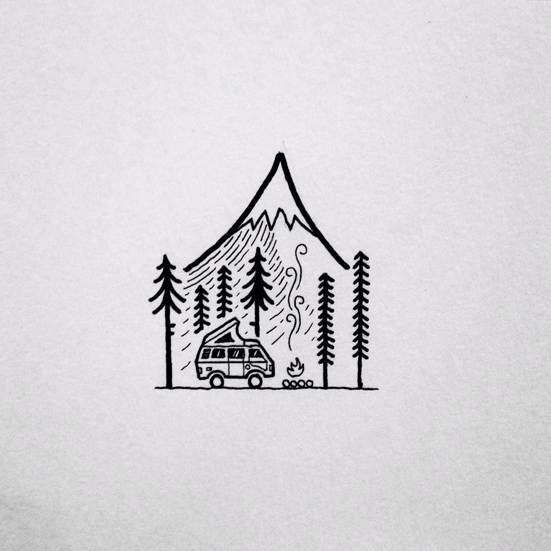 ![Эскиз домик в лесу Минимализм]()