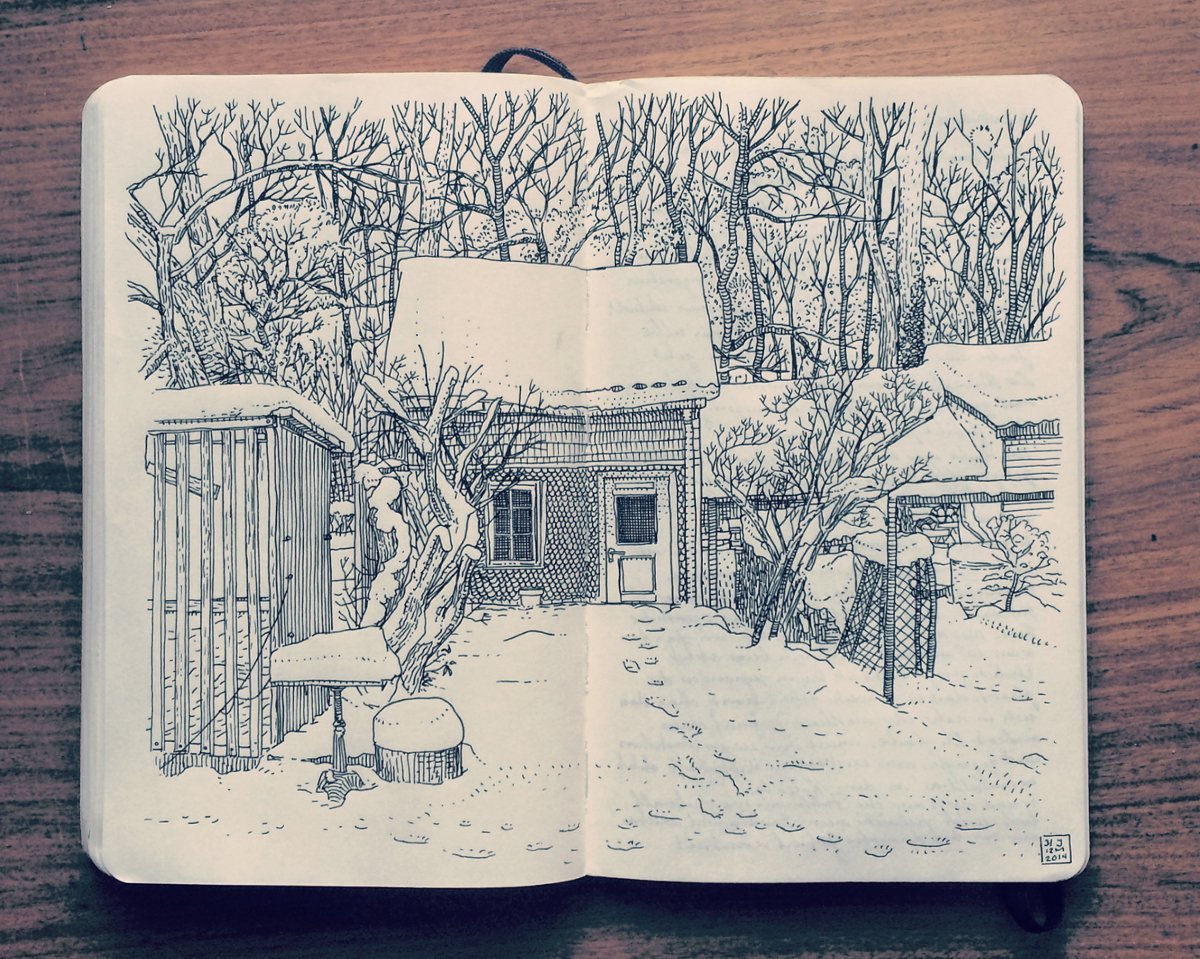 ![Домики тушью]()
