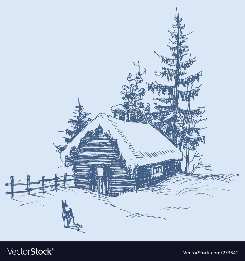 ![Домик в лесу набросок]()
