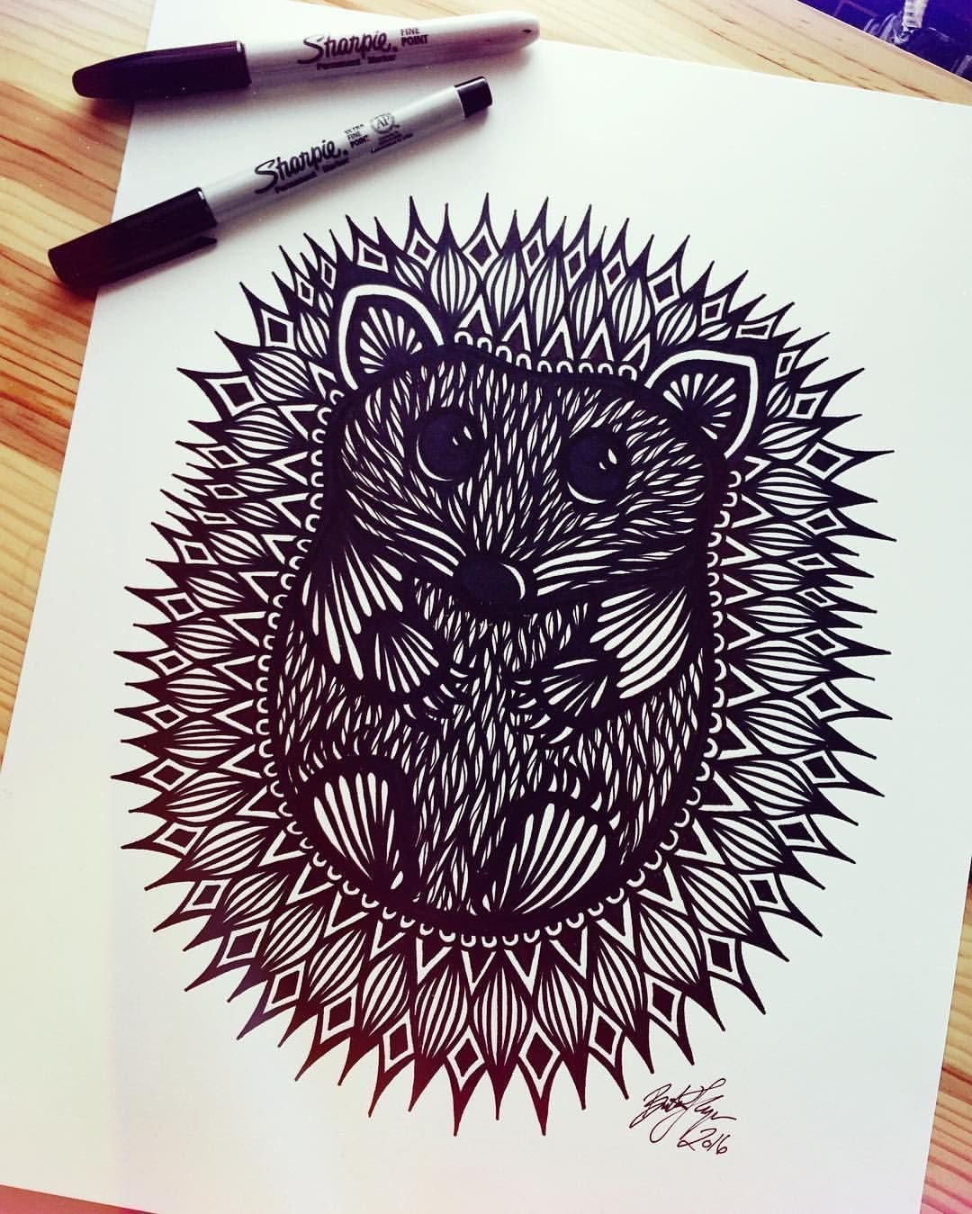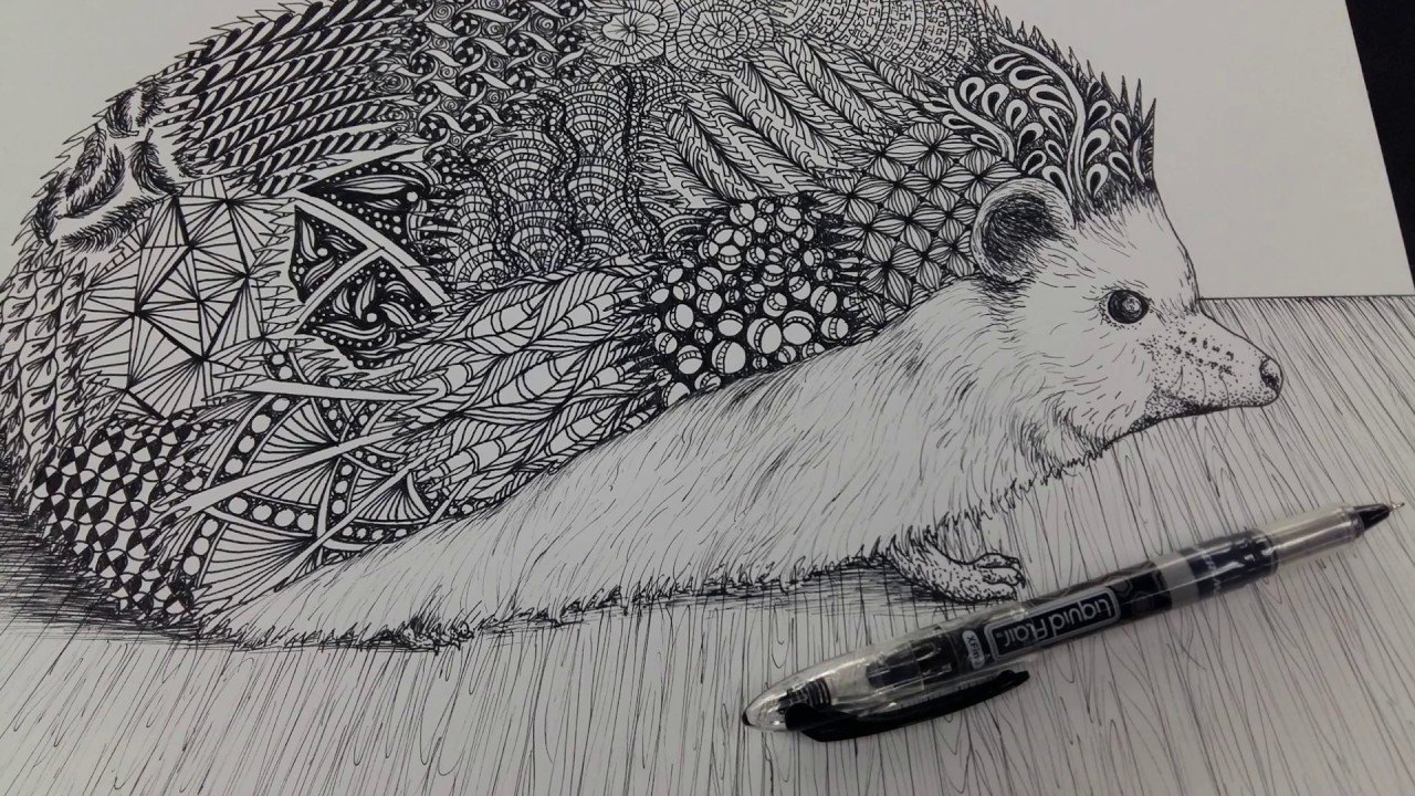 ![Ежик ручкой рисунок ручкой для срисовки]()