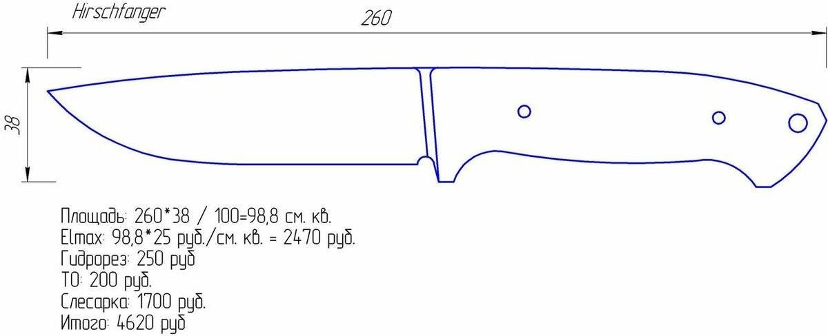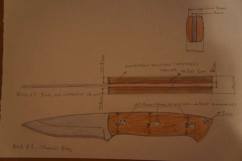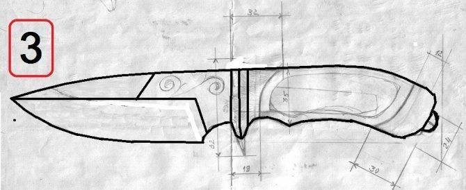![Чертёж рукоятки охотничьего ножа с размерами]()