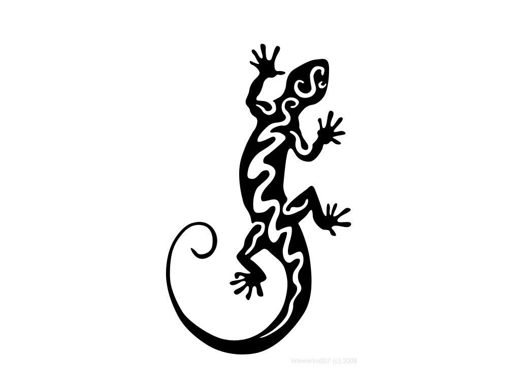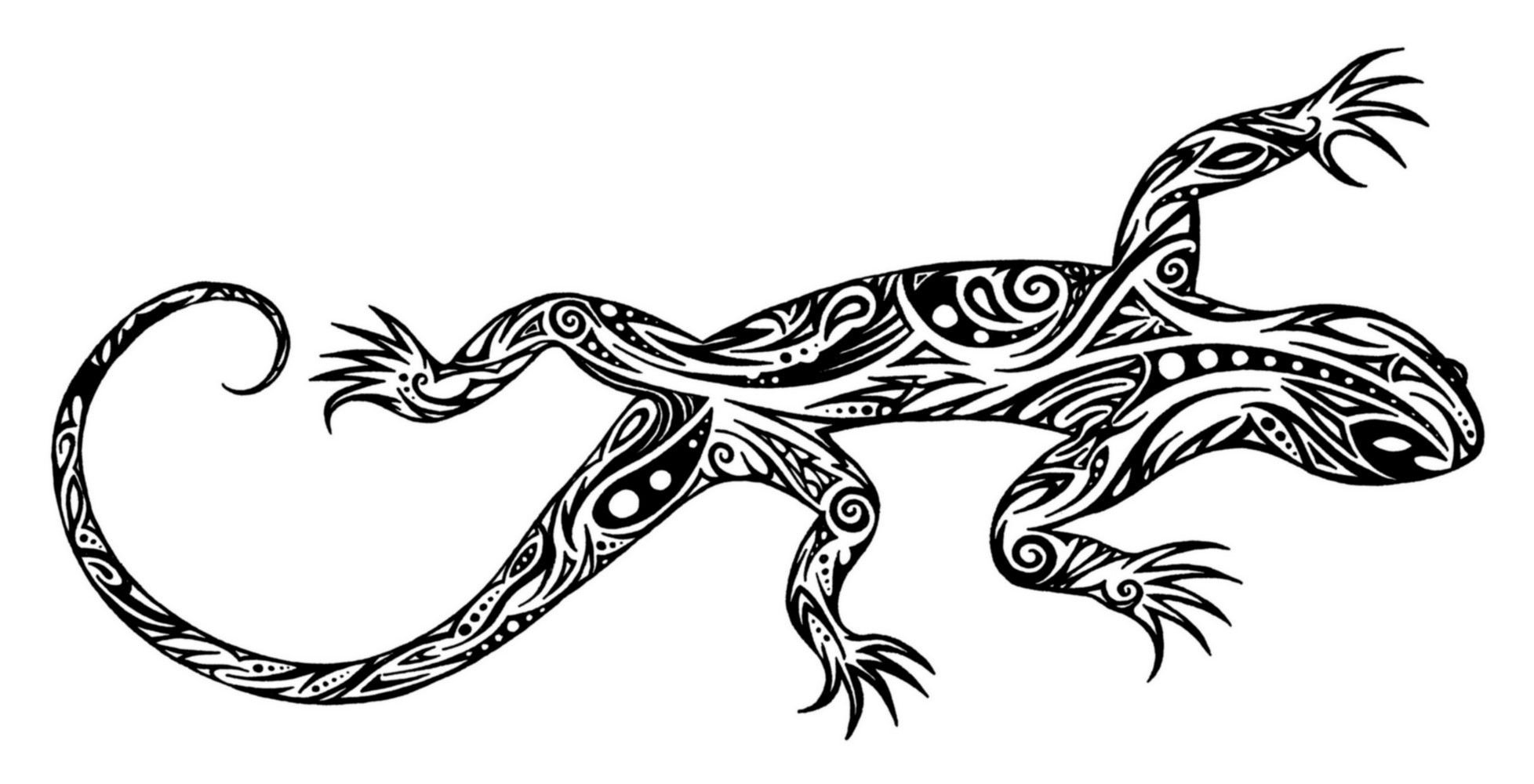 ![Тату ящерица трайбл]()