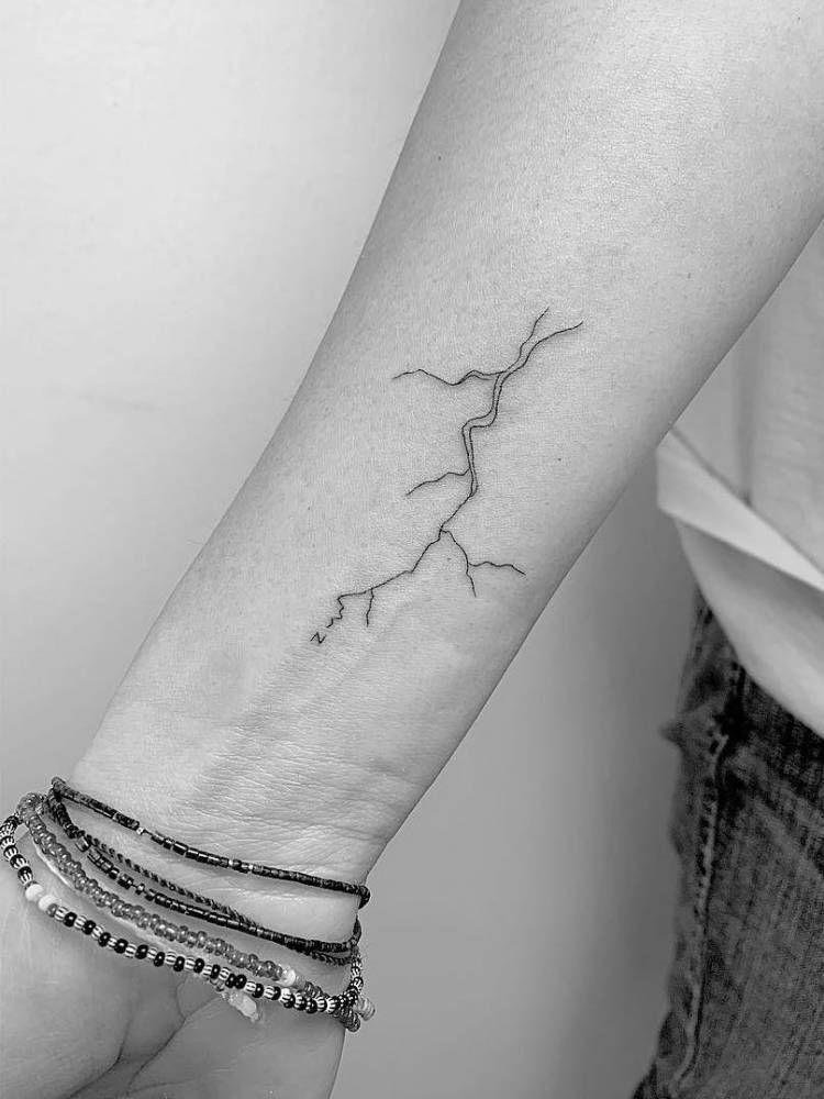![Тату молния на предплечье]()